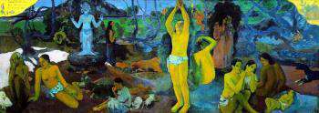 Gaugin: Honnan jövünk? Kik vagyunk? Hová megyünk? <br><br>(Az emberi lét állomásait ábrázolja szimbolikus jelentőségű állatok, madarak között. Kelet-ázsiai módra jobbról balra kell végigné